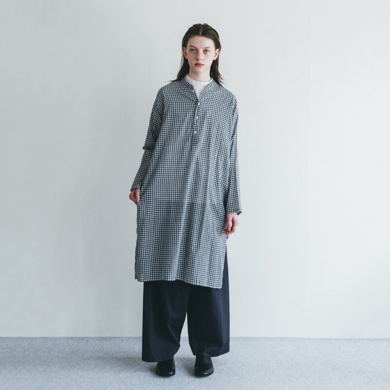 カディコットン アミタ ロングシャツ(NAVY CHECK)
