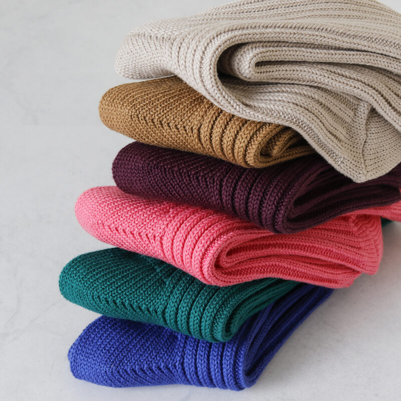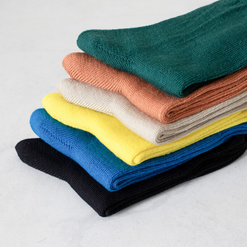 ヴィンテージマシンでゆっくり編み上げることで、丈夫でありながらも締め付けのないふっくらとした履き心地に仕上がっています。