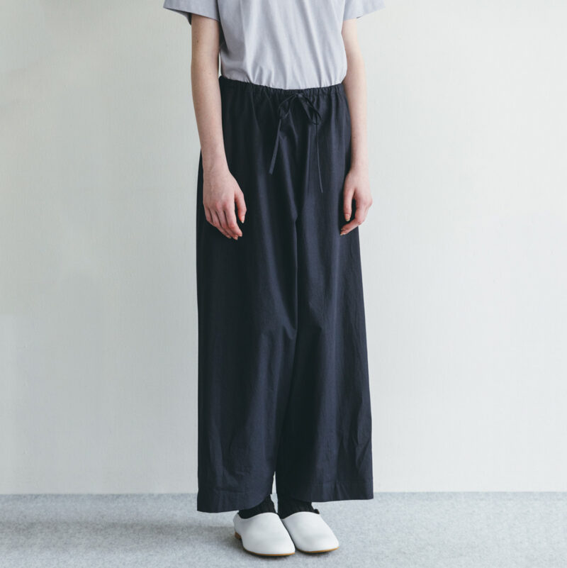 シンプルなワイドイージーパンツは、様々なウェア、スタイルとも好相性。