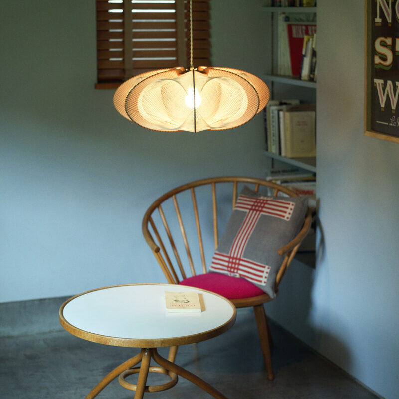 元々1950〜60年代の北欧のランプシェードから着想を得たデザインだけあって、ヴィンテージの家具とも好相性です。