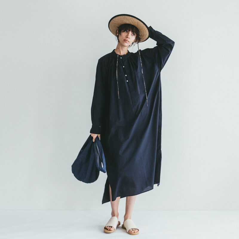 ロング丈のシャツドレス「カルティク ワンピース」。