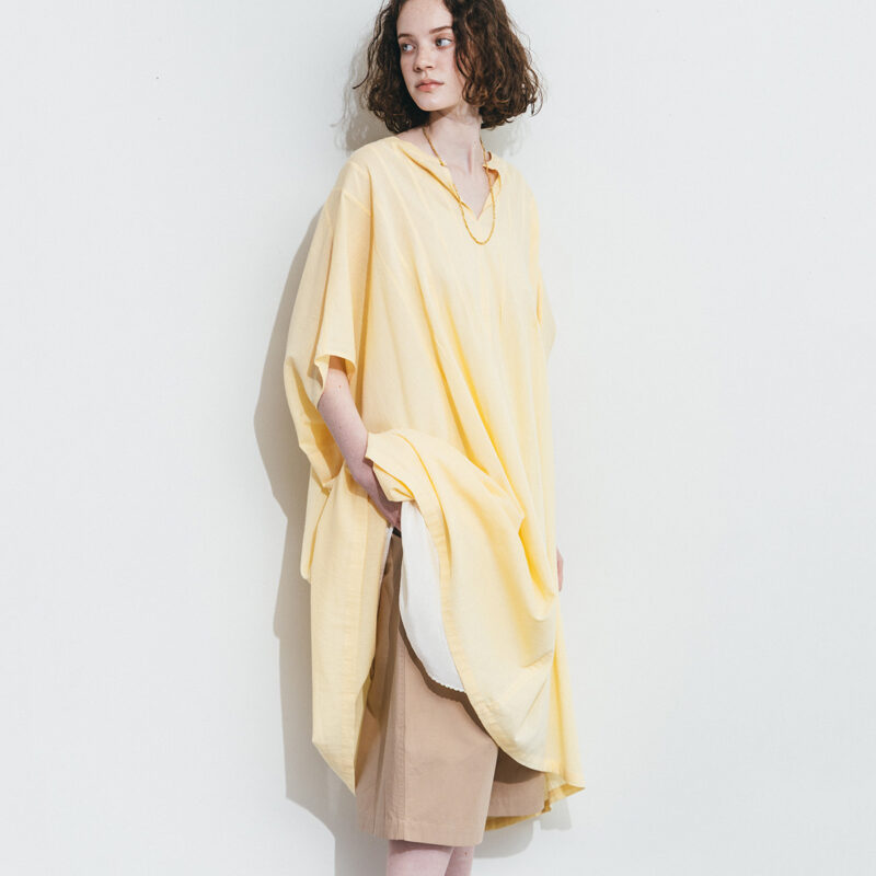 ガーゼコットンならではの透き通るようなシアー感、エアリーな雰囲気も魅力的。