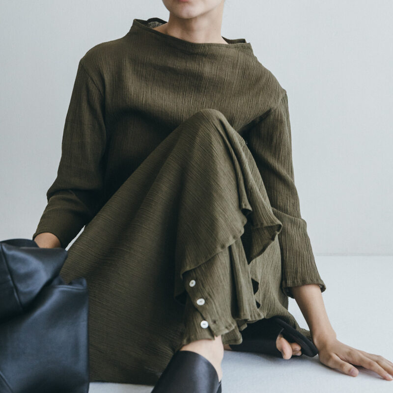 今季のコレクションは、柔らかさとフォルム、静と動、伝統と現代性といったコントラストの探求。