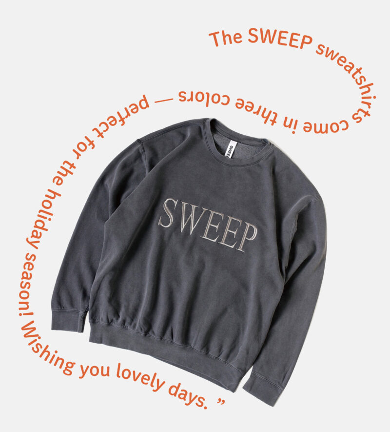 軽やかで暖かい新作「Sweatshirts」をはじめ、ホリデーシーズンにもぴったりなSWEEPのアイテムが店頭に並びます。
